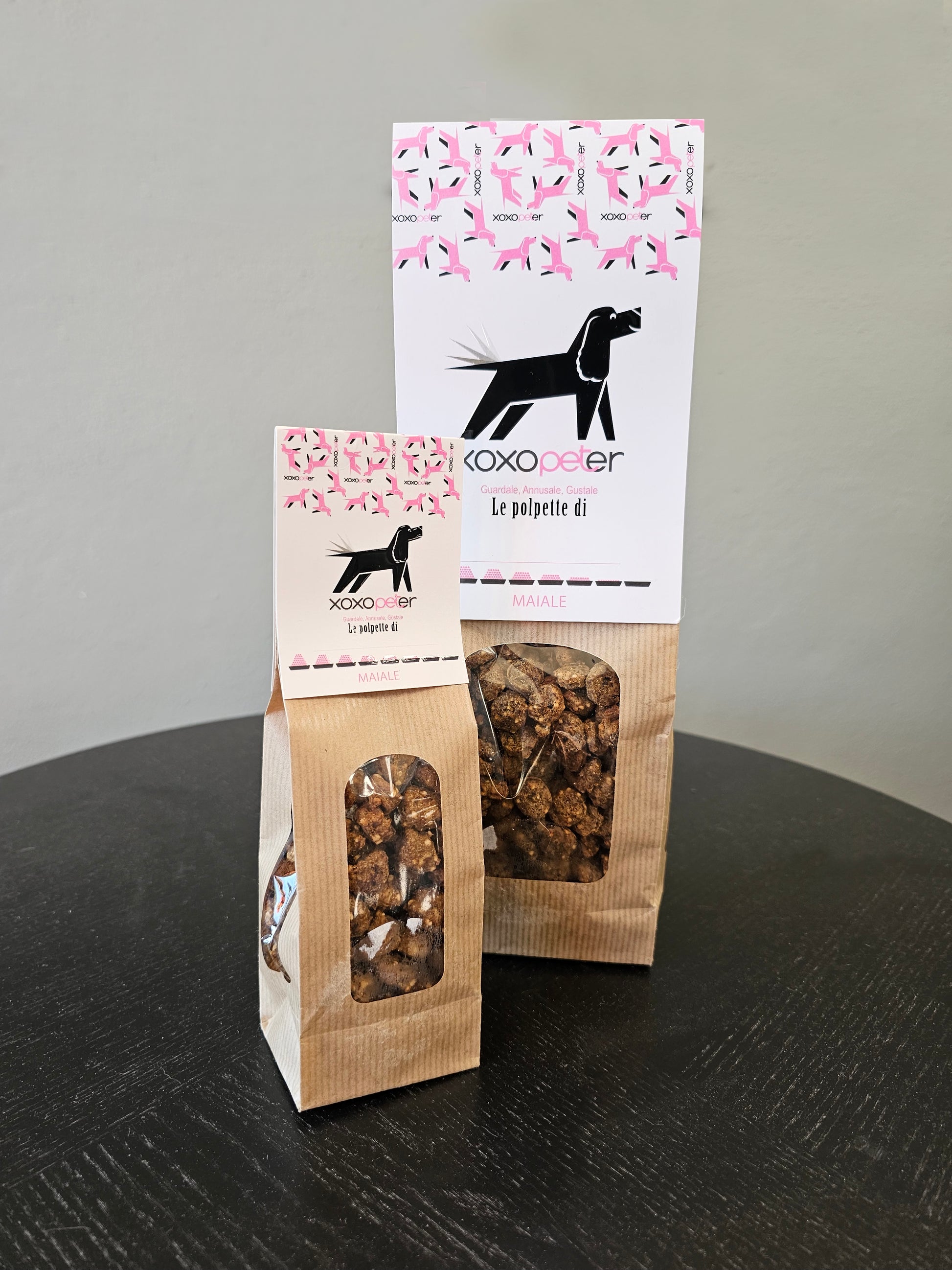 Le Polpette no Grain di maiale  con fiocchi di patate e quinoa, sono cotte in forno a bassa temperatura; alimento monoproteico completo e altamente digeribile.